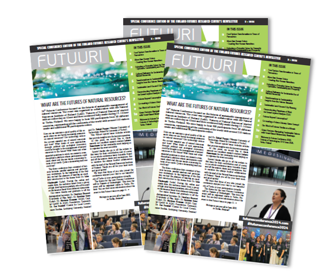 This special issue of Finland Futures Research Centre’s newsletter Futuuri includes articles giving insight to the keynote speakers based on their speeches as well as introduces some of the sessions organised during the event.